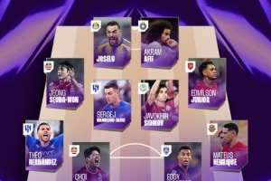 中场:郑承原(首尔FC)、米林科维奇(利雅得新月)、西迪科夫(纳萨夫)、埃迪米森(杜海勒)