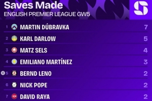 英超第5轮扑救榜: