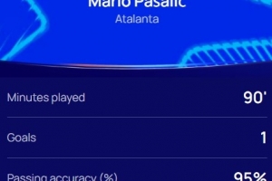 本场比赛帕萨利奇打进绝杀,全场跑动距离11.3km,传球成功率95%,赛后他也当选欧冠官方本场最佳球员。