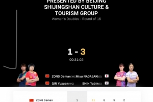 体育资讯10月1日讯 2025WTT中国大满贯女双1/8决赛,中国组合纵歌曼/覃予萱1-3不敌日韩跨国组合长崎美柚/申裕斌,无缘下一轮。