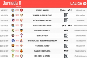 体育资讯10月1日讯 今天,西甲联赛在官网公布了第11轮赛程,皇马和巴萨分别在主场对阵瓦伦西亚和埃尔切。